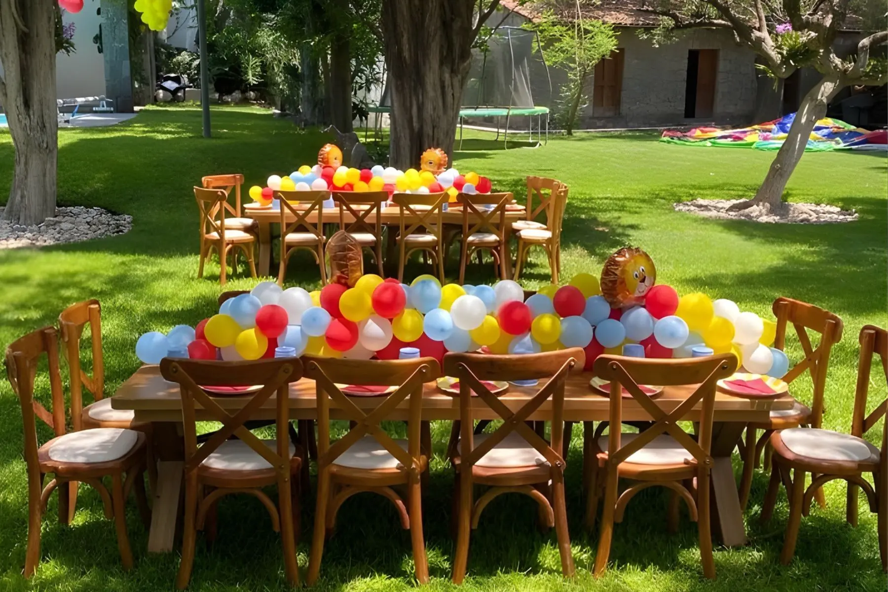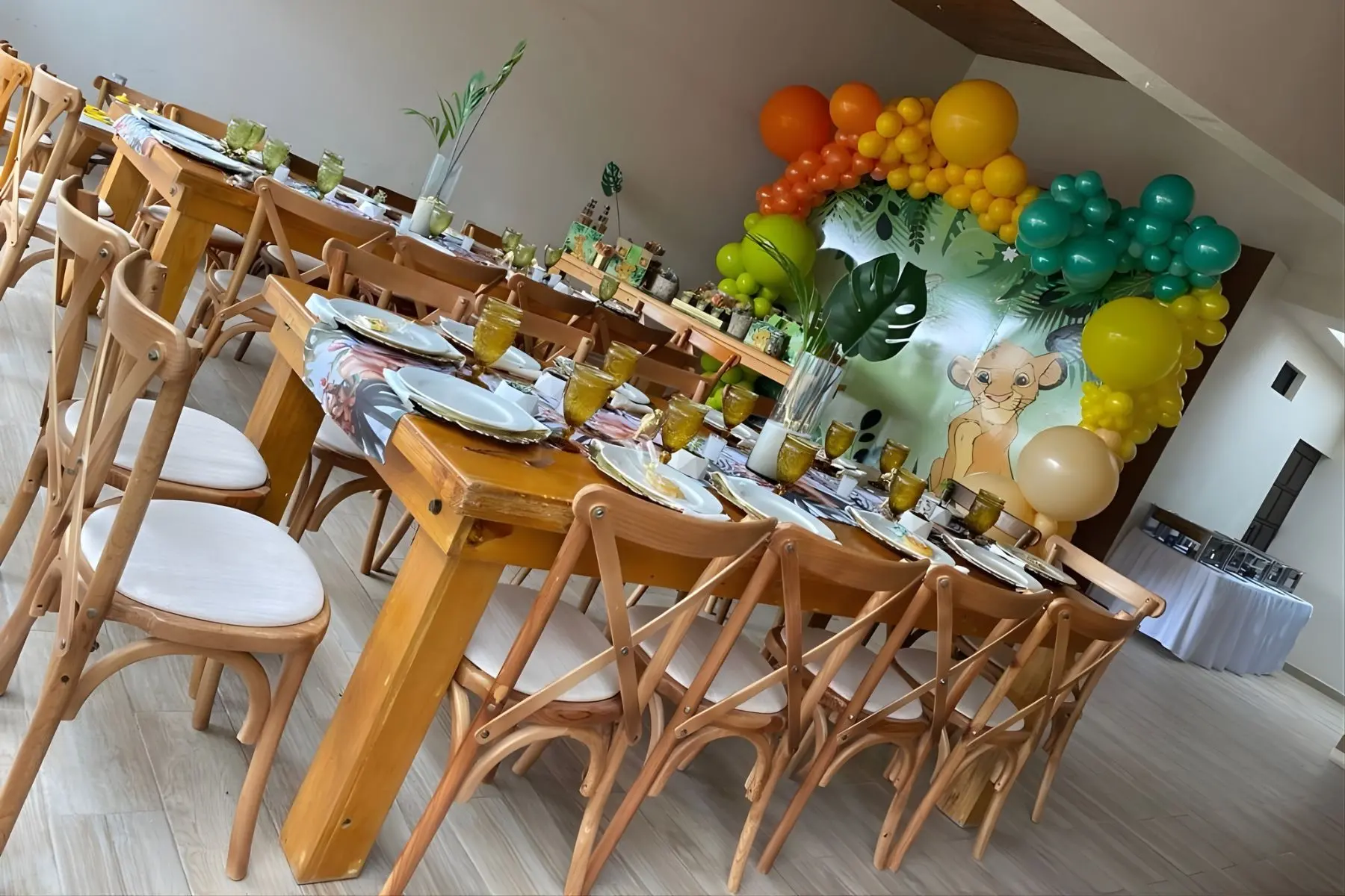 Maderas seleccionadas y acabados no tóxicos, pensados para un uso frecuente en eventos y espacios recreativos.
